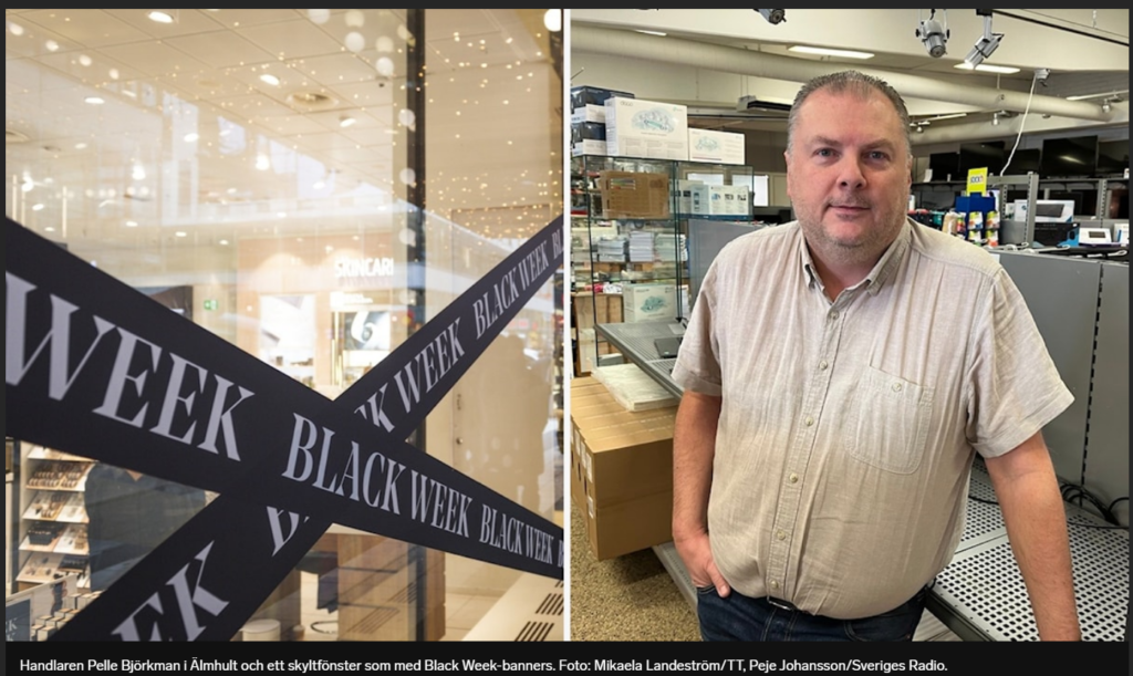 Sveriges Radio i Kronoberg rapporterar om en negativ inställning till Black Week från handlare. Hör inslaget med handlaren Pelle Björkman HÄR.